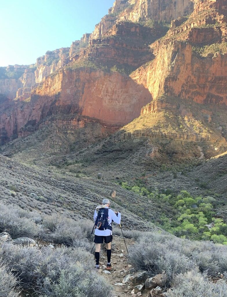 Train reasonably and consistently. Years of marathon running taught me to train hard and well, and to be careful about social media mythology. Some folks are adamant that you need to train all day, every day, to do something like a Grand Canyon hike and are quite critical if they think you’re not training enough (meaning like they do). Others (usually younger and fitter) are comfortable just winging it. For damned sure, you don’t want to overestimate your fitness or preparation and wander down into the canyon to distress or rescue. But be careful who you listen to, including me. I believe in training responsibly and recognizing that a good enough plan and sound logistics, coupled with determination and mental toughness, will see me through an endurance event. I will say that if you train harder or better than me, you will probably hike better than me. My plan was good enough for me to be successful.