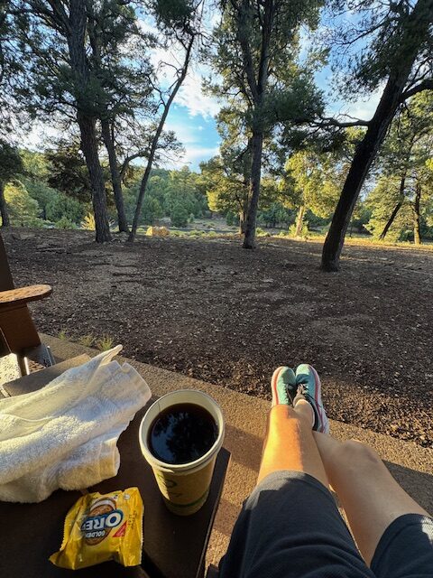 The alarm was set for 2:30 am because my lifelong friend and hiking sensei, Mike, and I had agreed to take our first steps down the South Kaibab Trail into the Grand Canyon for a 20+ mile “Rim to River to Rim” hike at 4:00 am. In training, Mike shared it was pretty important to him to get started on time, and as his friend and hiking partner, I agreed to make that happen, even though I was a little nervous about descending in the dark, and I am not thrilled about waking early, ever. I reconciled that with the time change in Arizona, we would really be waking at 5:30 am Eastern (our time), and that’s sometimes possible for me with a cup of coffee and a purpose. I had both. To be at the trailhead at 4:00 am, we had to be in the cab from Maswik Lodge in Grand Canyon Park at 3:30 am. We called the day before, and the woman at the taxi dispatch had told us not to call for a cab until we had “backpacks on and coffee in hand.” They’re that good. We’d be ready.