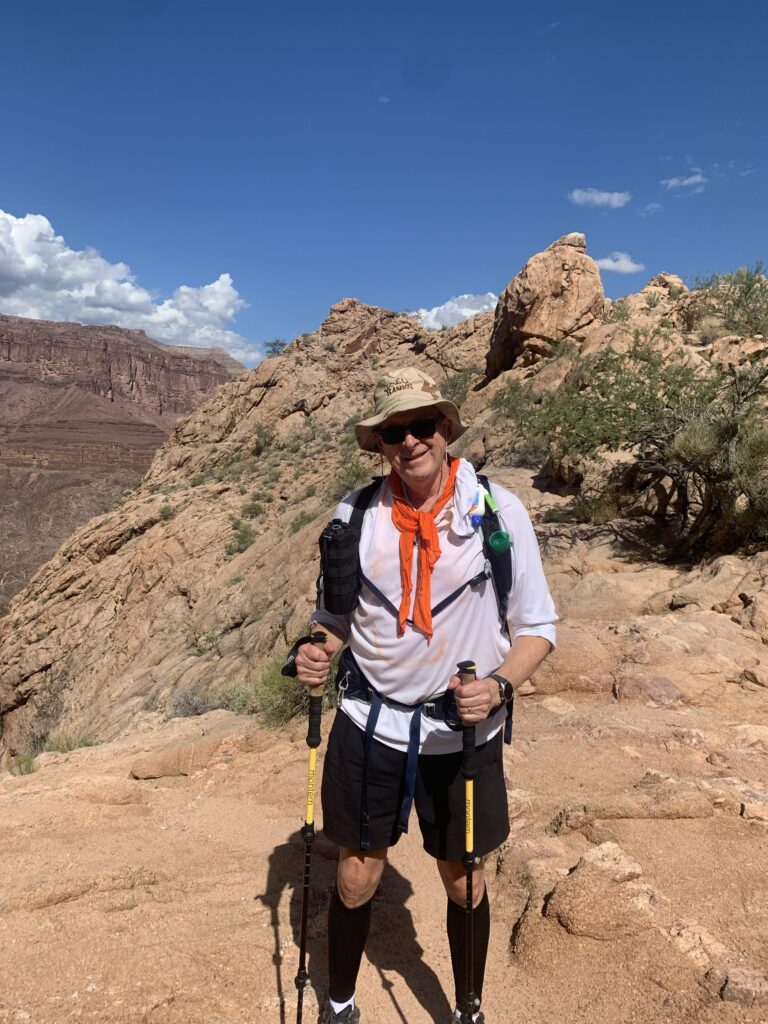 Me? A 65-year-old, semi-retired average guy, a bit of a slacker, who somehow ran 30 marathons (including three ultras) from age 40 to 55. No elite athlete by any means. I’m 6’4” and 220 pounds — a Clydesdale. In the past ten years, I’ve been blessed to make it successfully through throat cancer, blood clots, a pesky heart issue, and a knee replacement. Other than that, I’m a neurotic hypochondriac who sees the glass as half-broken. There were times hiking and training, when I considered it a real possibility that this hike could kill me. Hikers died in the Grand Canyon already this year. Some of my angst was legit, and some was just plain ridiculous. I went anyway. Sometimes more excited about it than others, but I kept moving forward. I love endurance events, and there were lots of similarities between marathon running and hiking, and yet there’s one huge difference — if it goes bad in a marathon, you catch a cab back to your car. Not so much at the bottom of the Grand Canyon. The stakes were higher.