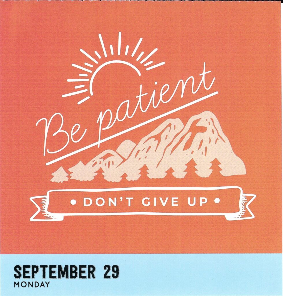 I woke up at 2:20 am before the alarm went off. For just a few minutes, I enjoyed the stillness, and for inspiration, good luck, and reassurance, I opened my Bible app for the random verse of the day. No kidding, it was the 23rd Psalm. Verse 1 “The Lord is my shepherd; I shall not want. He makes me lie down in green pastures. He leads me beside still waters.” Verse 3? “Even though I walk through the valley of the shadow of death, I will fear no evil, for you are with me; your rod and your staff, they comfort me.” Man, that was spooky. A good omen, I decided. (When I returned home a week later, I found on my pillow my wife’s inspirational message from her daily calendar for September 29th, the day of our hike. It was “Be patient. Don’t give up” over a silhouette of a mountain. Really spooky!