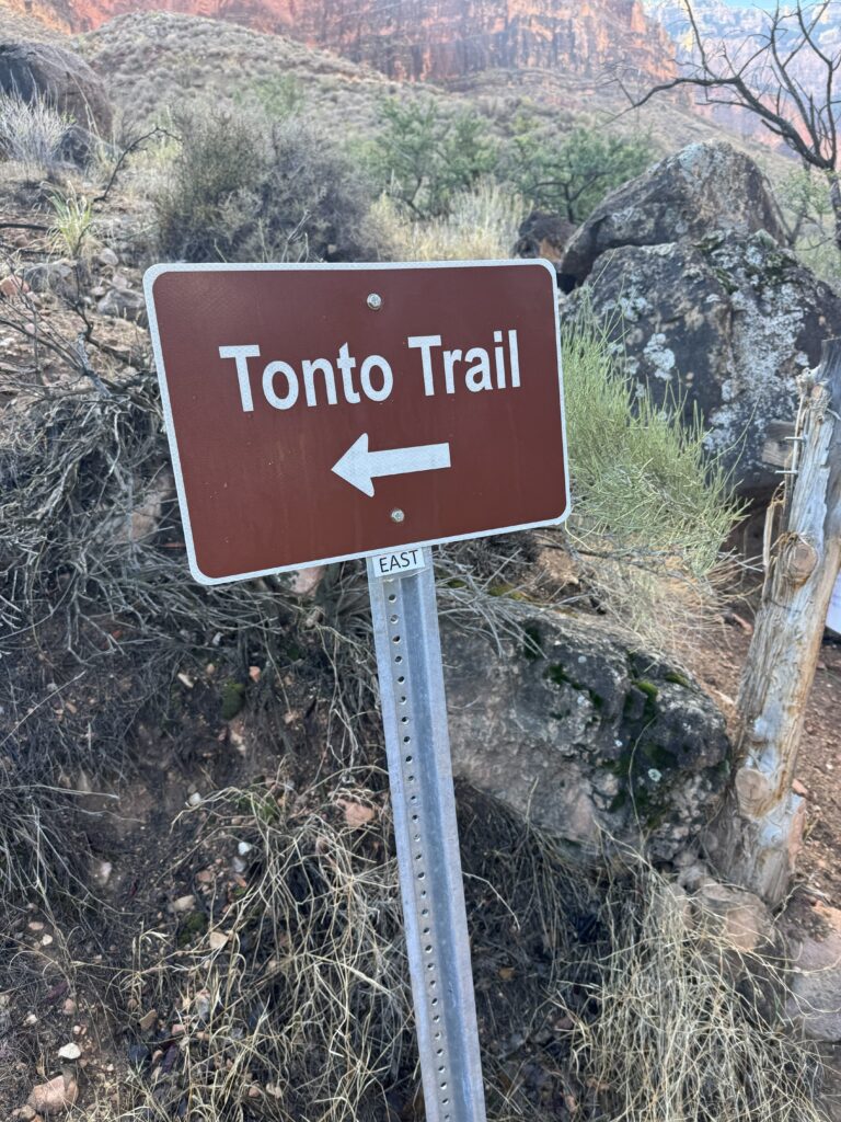 Tonto Trail isn’t well marked, and doesn’t have to be. It’s a footpath towards a wall to cross a gorge, and back out.